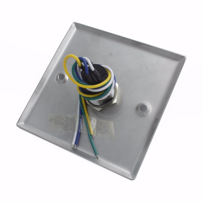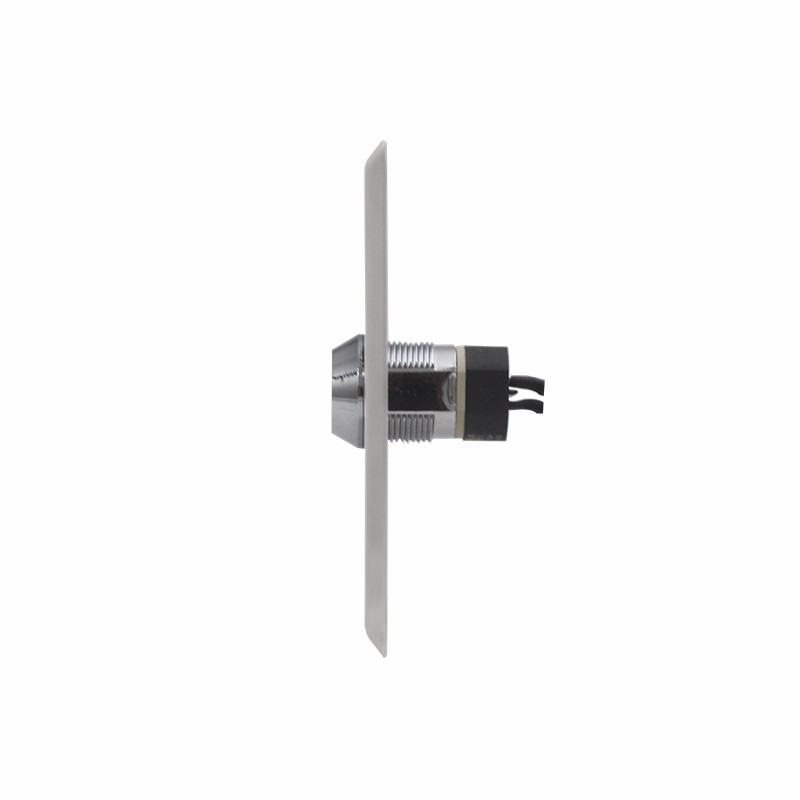 产品尺寸:86Lx86Wx30H(mm) 供电电压:12VDC 接点输出:NO/NC/COM 最大电流:3A/36DC 标配面板:304不锈钢面板,厚度约0.9mm 耐用测试:100,000 次 适用门型:空心门框(暗装) 适用温度:-10℃~+55℃ 适用湿度:0-95% 产品重量:0.14KG